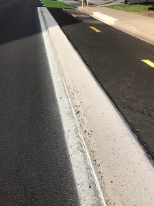 Protective beveled concrete curbing separating bikeway from vehicle travel lane